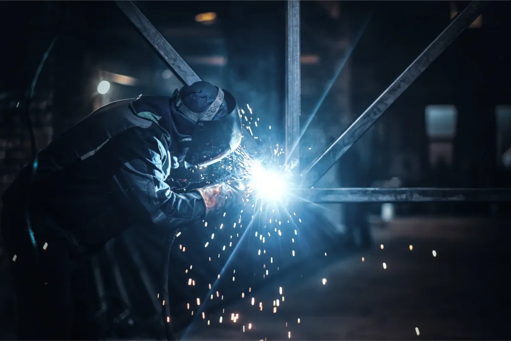 Spawanie łukowe elektrodą topliwą w osłonie gazów aktywnych (np. CO₂ lub mieszanki gazowe).